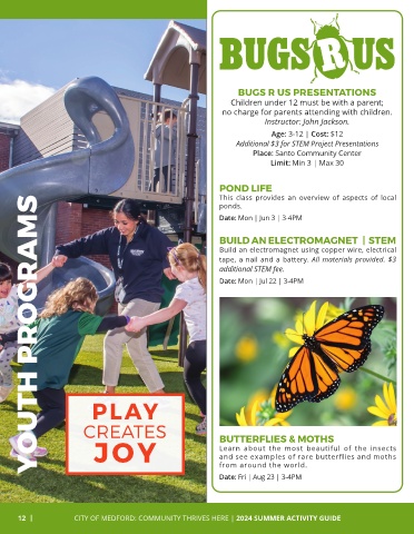 12  |           CITY OF MEDFORD: COMMUNITY THRIVES HERE | 2024 SUMMER ACTIVITY GUIDE