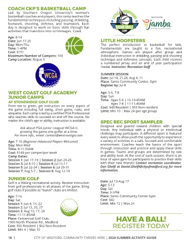 18  |           CITY OF MEDFORD: COMMUNITY THRIVES HERE | 2024 SUMMER ACTIVITY GUIDE