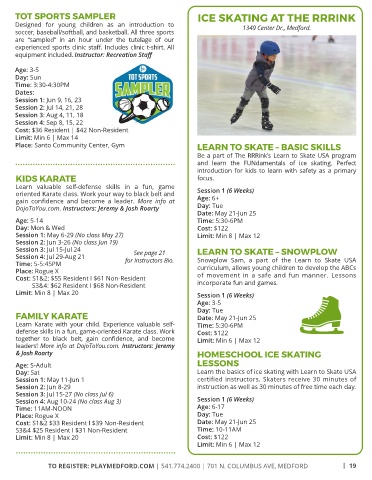 TO REGISTER: PLAYMEDFORD.COM | 541.774.2400 | 701 N. COLUMBUS AVE, MEDFORD                    |  19