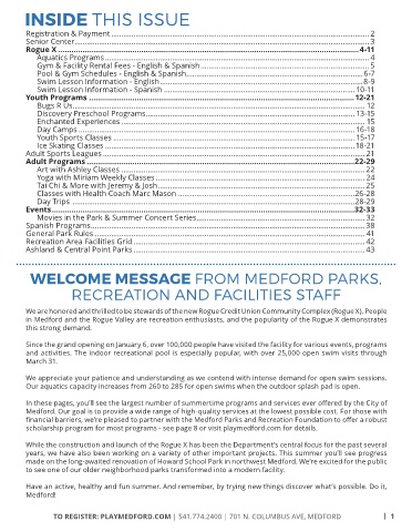 WELCOME MESSAGE FROM MEDFORD PARKS,