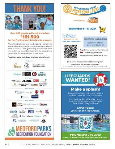30 | CITY OF MEDFORD: COMMUNITY THRIVES HERE | 2024 SUMMER ACTIVITY GUIDE