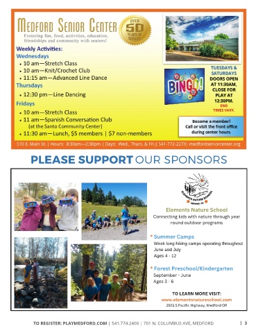 TO REGISTER: PLAYMEDFORD.COM | 541.774.2400 | 701 N. COLUMBUS AVE, MEDFORD | 3