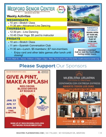 Please Support Our Sponsors REGISTER: PLAYMEDFORD.COM | 541.774.2400 | 901 ROSSANLEY DR., MEDFORD | 3